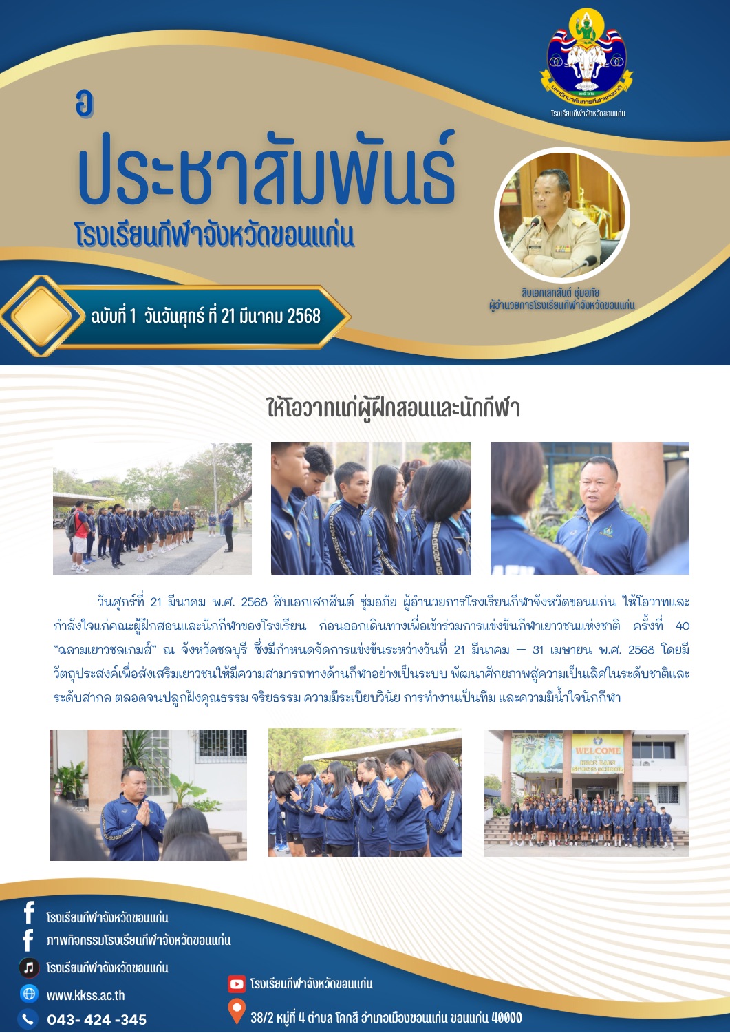 ประกาศโรงเรียนกีฬาจังหวัดขอนแก่น เรื่อง รายชื่อผู้สอบผ่านภาคปฏิบัติ (ทักษะกีฬา)และผู้มีสิทธิ์เข้าสอบความรู้ทางวิชาการ ประจำปีการศึกษา 2569